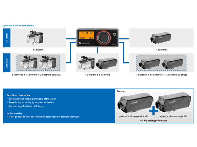 - Один отопитель Airtronic и один отопитель Hydronic